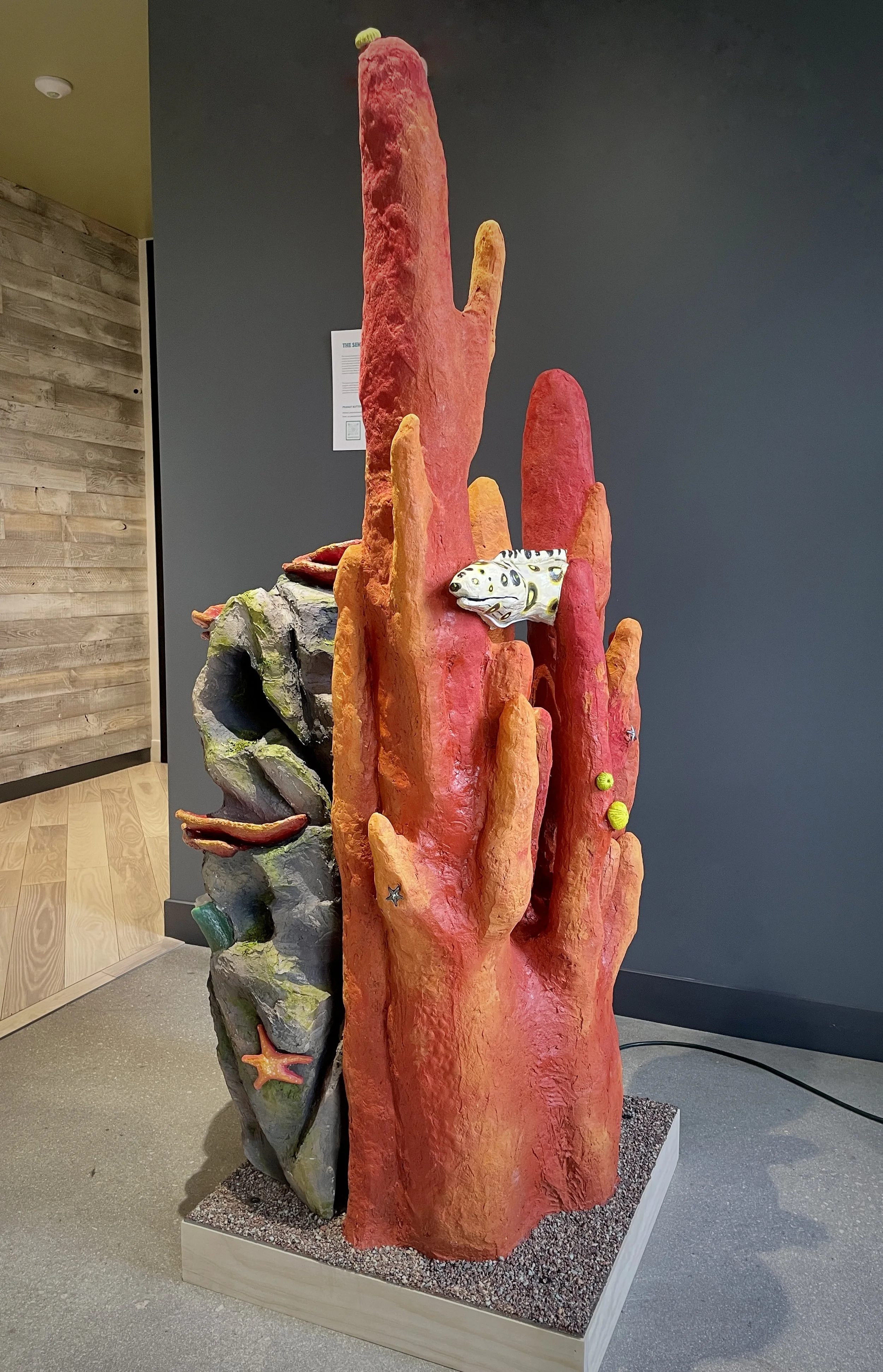 2025. The Sensory Sculpture is an interactive sculpture that explores sound as a powerful and underutilized sensory aspect of public art. There are 11 “buttons” on the sculpture, 9 play a sound and 2 activate LED lights. It’s designed to look like a coral reef because most of the sounds are real ocean recordings and the idea was that many people (myself included) are soothed by ocean sounds. There are also 2 tonal frequencies, 396 Hz and 174 Hz, believed to release pain, stress, and emotional blockages in the brain and body.